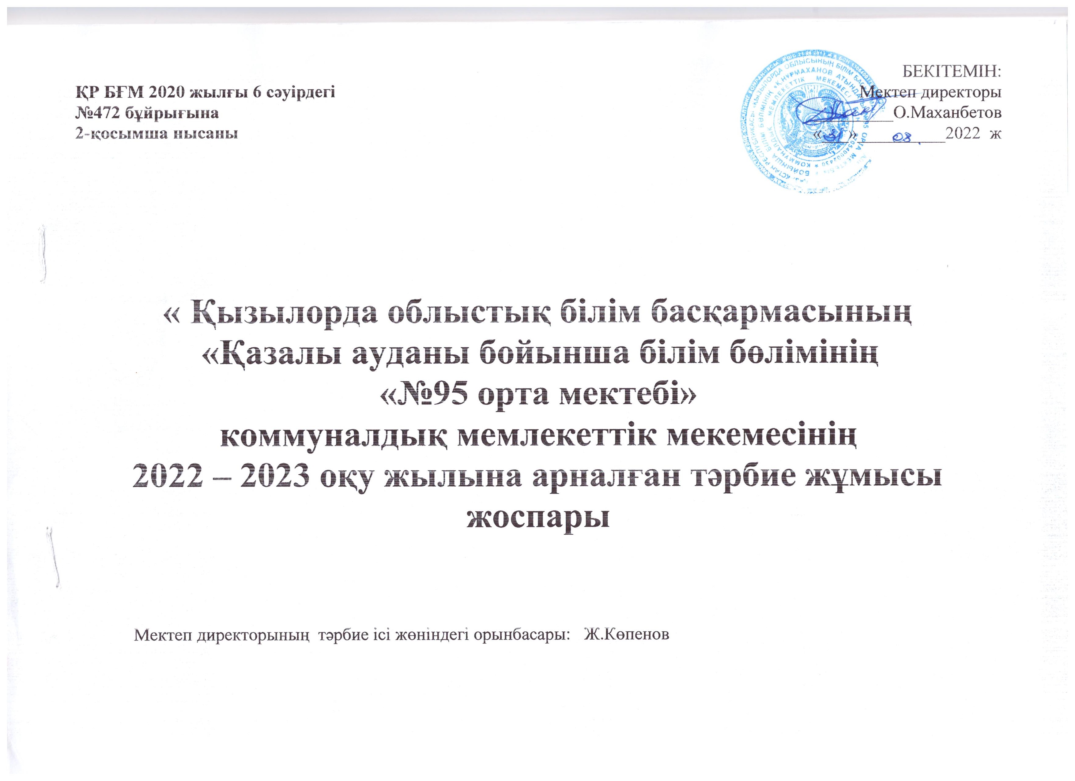 «Қызылорда облысының білім басқармасының «Қазалы ауданы бойынша білім бөлімінің Қ.Нұрмаханов атындағы №95 орта мектебі» коммуналдық мемлекеттік мекемесі